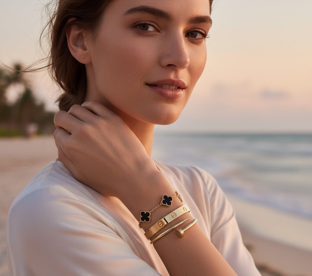 Every piece begins with a simple belief: your jewelry should move with your life, not limit it. From sunrise swimsto sunset celebrations, we craft pieces that embraceevery moment with you.