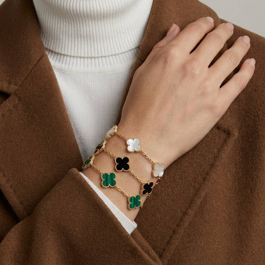 Add a touch of charm to your everyday look with the Trinity & Clover Bracelets. Featuring a delicate blend of timeless symbols and sleek design, these bracelets are perfect for layering or wearing solo. Available in classic gold and silver, they bring understated elegance to any outfit.