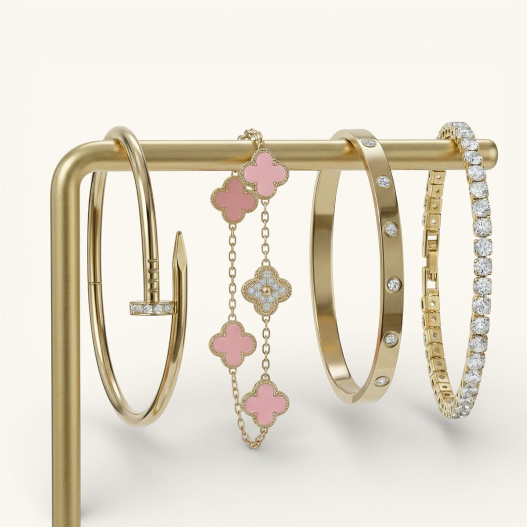 • Elegance Nail Bracelet: A bold and modern statement piece with a sleek nail-inspired design (one size).