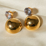 The Gretta Gold Earrings embody polished radiance. Their gleaming 18k gold dome shape provides a smooth surface that catches the light beautifully, and a single diamond simulant adds a touch of subtle sparkle. Perfect for special occasions and everyday wear.