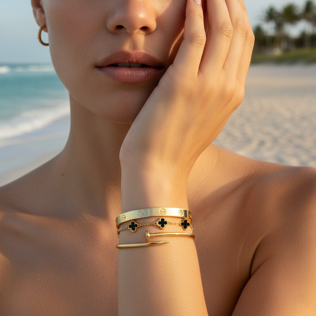 Discover waterproof jewelry that moves with your life. From sunrise swims to sunset celebrations.